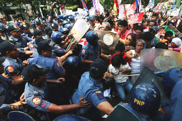 Après le Japon et ses tensions avec la Chine, la Coré du sud et ses tensions avec son homonyme du nord qui menace d’un nouvel essai nucléaire pour saluer la visite présidentielle, la Malaisie et ses tensions aéronautiques, Barack Obama terminera sa tournée par un passage aux Philippines, où l’attend une certaine … tension entre forces de l’ordre et manifestants hostiles au déploiement dans leur pays de nouvelles troupes étasuniennes, qu’ils accusent de menacer la souveraineté nationale, l’environnement ou même la morale avec l’augmentation de la prostitution…